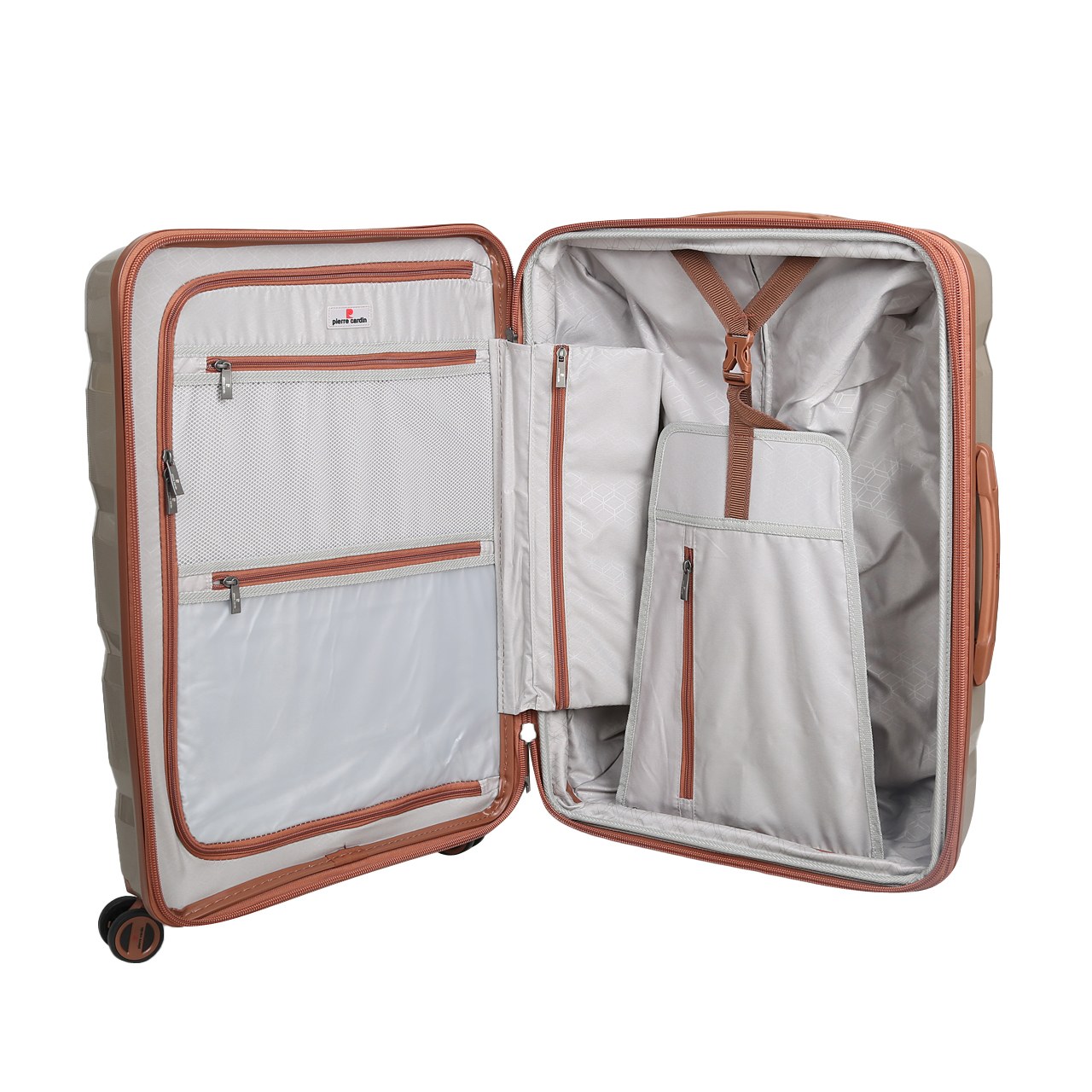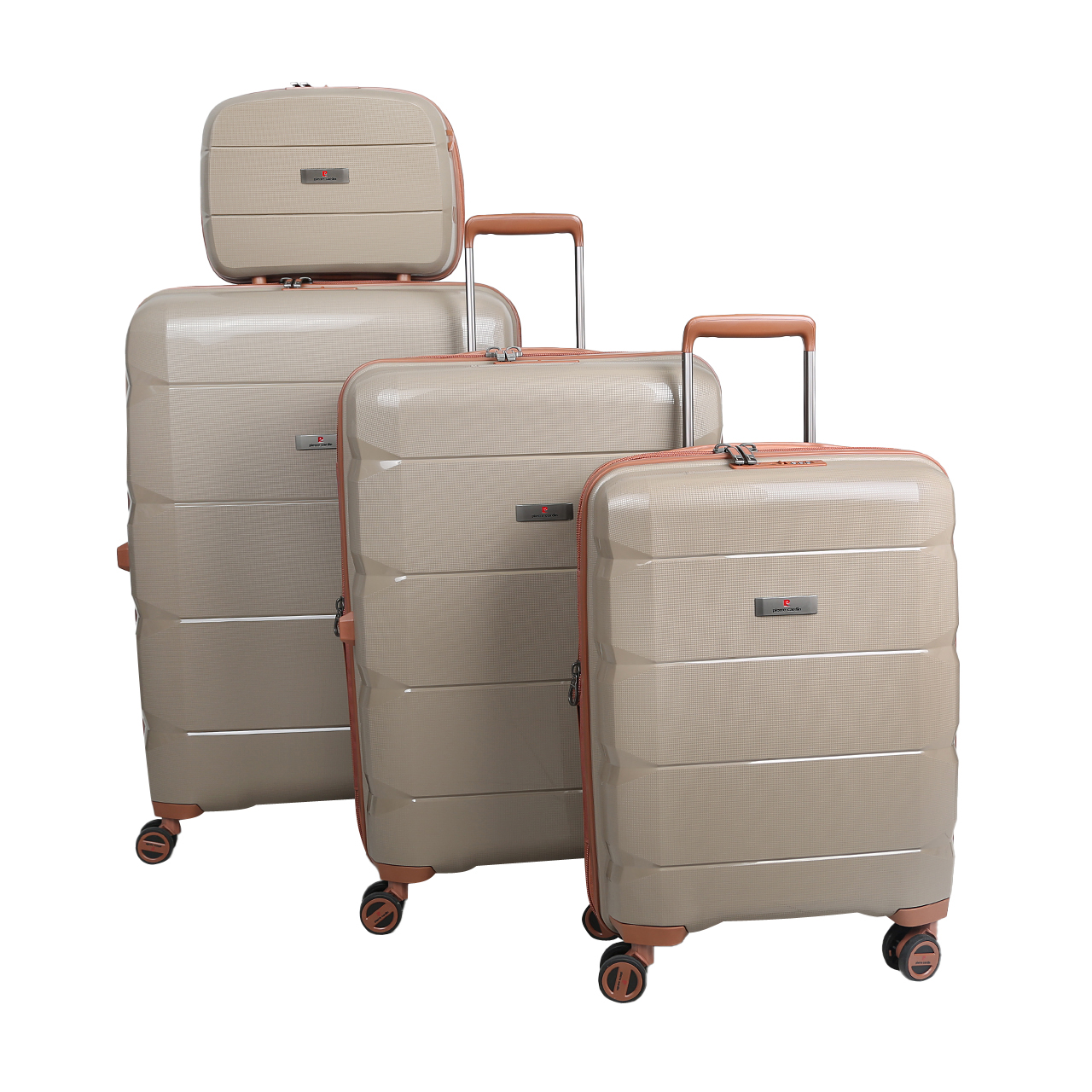 چمدان پیر کاردین PIERR CARDIN مدل SBP3540 سایز متوسط دارای رنگ بندی بسیار زیبا و شیک کرم، نسکافه ای، آبی و مشکی می باشد. این چمدان هارد کیس زیبا از جنس رویه 100% پلی پروپلین (POLY PROPYLENE PP ) درجه یک که نگرانی شما را برای شکستن بدنه کاملا برطرف کرده است و آستر داخلی پلی استر مخملی درجه یک با طراحی بسیار زیبا می باشد. دسته ترولی این محصول با طراحی بسیار خاص و متفاوت آن از جنس آلیاژ مرغوب آلومینیوم آبکاری کروم ساخته شده است و برند محصول بر روی آن قید شده که مناسب حمل چمدان با وزن های استاندارد هر سایز می باشد و نگرانی مصرف کننده کامل رفع گردیده است و برای راحتی در حمل، قابل تنظیم در ارتفاع های مختلف می باشد.سایز متوسط مناسب برای سفرهای خودرویی و مناسب تا 24 کیلو بار می باشد.