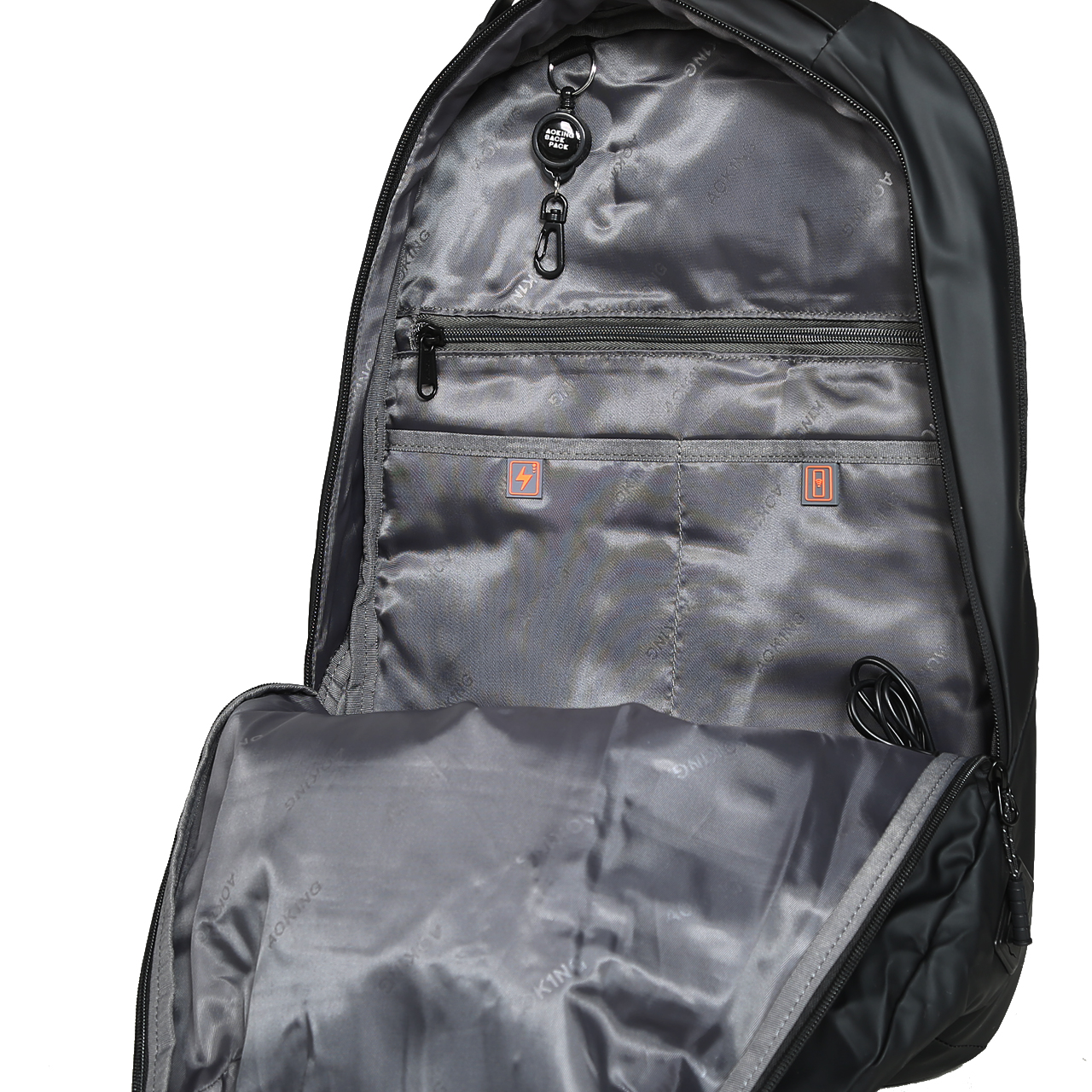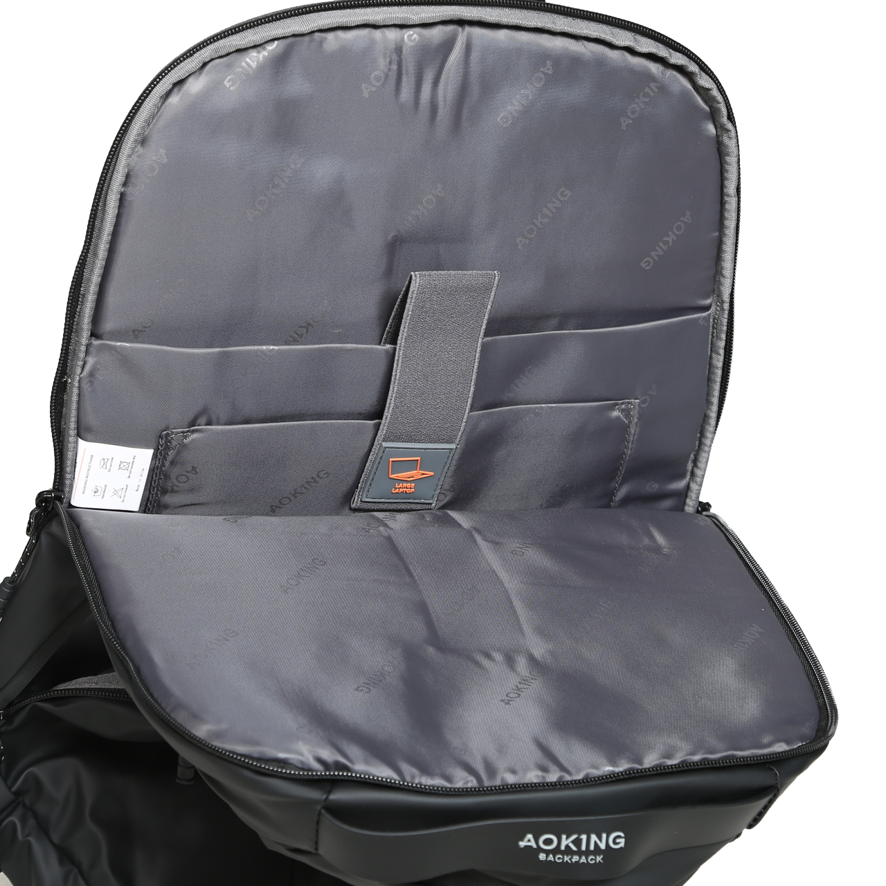 کوله پشتی آوکینگ AOKING مدل SBA4003 یک کوله بسیار شیک و خاص از برند آوکینگ ساخته شده از پارچه پلی استر شمعی ضد آب و آستر داخلی پلی استر با برند آوکینگ، کوله ای بسیار خوش سایز هست که از این محصول بسیار کابردی هم می توان به عنوان کوله ای برای استفاده روزمره و دانشگاه و مدرسه و یا در سفر و طبیعت گردی از آن استفاده نمود. از طراحی خاص این محصول که بگذریم، این محصول دارای چندین فضای بسیار عالی و کاربردی هست، که یک فضای زیپ دار پشت فضای اصلی وجود دارد که فضای جای لپ تاپ تا سایز 15.6 اینچ (28*36 سانتی متر) و بر روی آن یک فضای جای تبلت(18*25 سانتی متر) وجود دارد. در داخل فضای اصلی در دیواره آن یک فضای زیپ دار و جیب هایی کوچک جای خرده ریز وجود دارد. در قسمت جلوی کوله پشتی آئوکینگ یک جیب جهت سازماندهی لوازم خرده ریز شما، وجود دارد. این محصول دارای یک عدد دسته ثابت خاص در قسمت بالای کوله می باشد. در قسمت پشت محصول مش (ابر) ضد عرق جهت گردش هوا و یک جیب زیپ دار و یک تسمه برای قرار دادن کوله بر روی دسته چمدان در سفر وجود دارد و پشت بند کوله اسفنجهای قابل تنفس پوشانده شده تا کوله پشتی برای استفاده نرم و راحت باشد و از تعریق جلوگیری نماید و بر روی بند کوله جای عینک وجود دارد. آستر داخلی این محصول برند تولید کننده بر روی آن قید شده است. در قسمت کنار محصول پورت USB و تایپ C وجود دارد. زیپ های اصلی این محصول بسیار با کیفیت کار شده است و سر زیپ های خاص آن به زیبایی کار افزوده است. وزن این محصول بسیار سبک و 880 گرم می باشد.