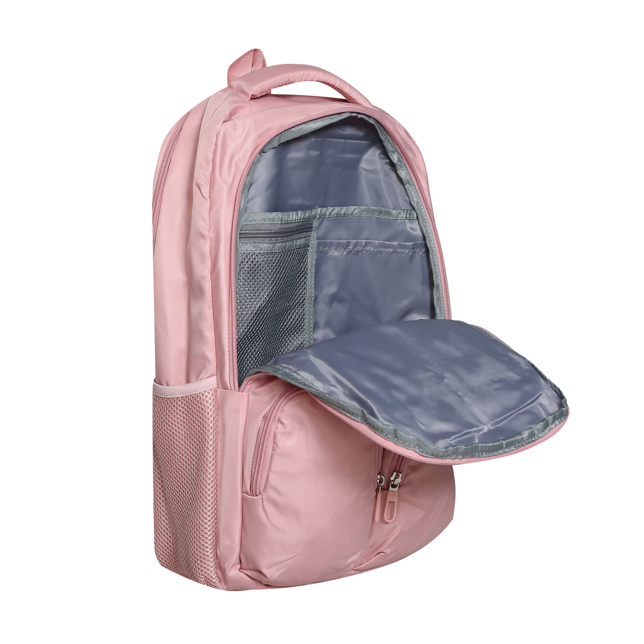 کوله پشتی بنج BANGE مدل SBBG1807 یک کوله بسیار شیک و خاص از برند بنج ساخته شده از پارچه واتر ریز بافت (ساتن) و آستر داخلی پلی استر و در رنگ بندی بسیار زیبا و جذاب کوله ای بسیار خوش سایز هست که از این محصول بسیار کابردی هم می توان به عنوان کوله ای برای استفاده روزمره و مدرسه و دانشگاه یا در سفر از آن استفاده نمود. از طراحی بسیار زیبای این محصول که بگذریم، این محصول دارای چندین فضای بسیار عالی و کاربردی هست، که زمانی که فضای زیپ دار اصلی باز شود در دیواره آن یک فضای جای لپ تاپ 15.6 اینچ (فضای جای لپ تاپ 27*40 سانتی متر) در قسمت دیواره وجود دارد. در قسمت جلوی کوله پشتی بنج چندین فضای زیپ دار و جیب های تعبیه شده است که مناسب و ایده آل برای گذاشتن لوازم خرده ریز شما می باشد که به راحتی همه چیز در دسترس شماست. در قسمت پشت محصول یک جیب زیپ دار و یک تسمه برای قرار دادن کوله بر روی دسته چمدان در سفر وجود دارد و بندهای شانهای پهن با اسفنجهای قابل تنفس پوشانده شده تا کوله پشتی برای استفاده نرم و راحت باشد و از تعریق جلوگیری نماید. در قسمت های بغل کوله دارای یک جیب تور در هر سمت می باشد که بسیار کاربردی می باشد. این محصول دارای یک عدد دسته ثابت در قسمت بالای کوله که بسیار راحت می باشد. زیپ های اصلی این محصول بسیار با کیفیت کار شده است و سر زیپ های خاص آن به زیبایی کار افزوده است. وزن این محصول بسیار سبک و 670 گرم می باشد.
