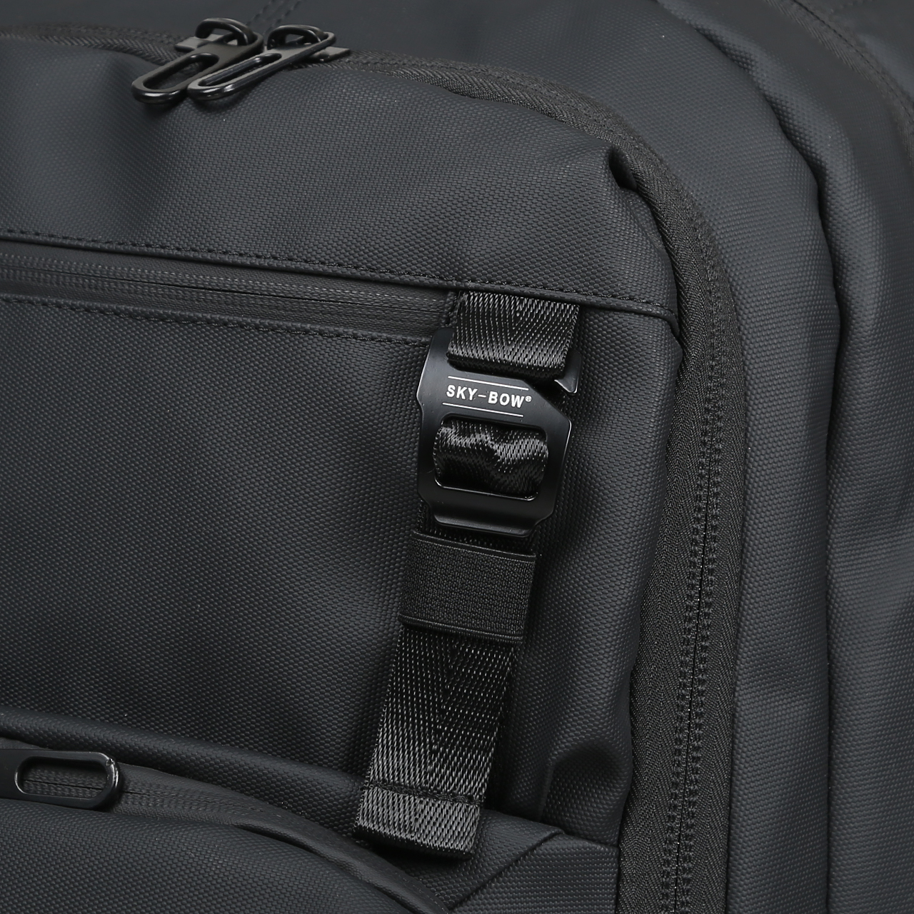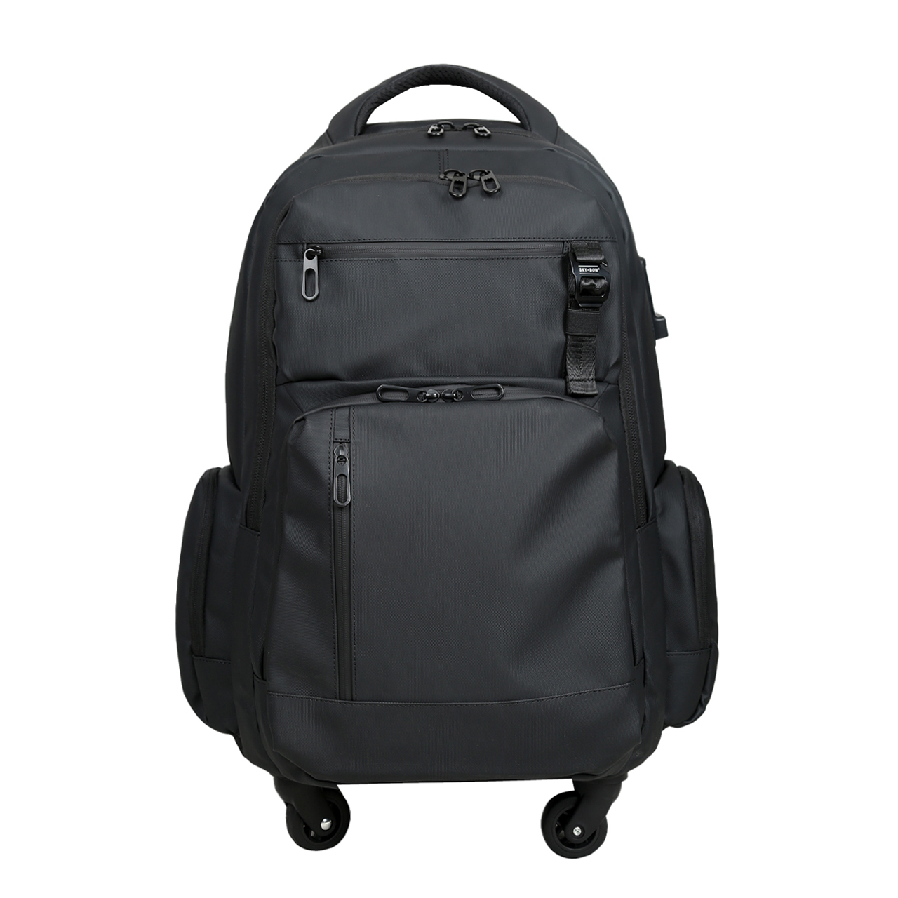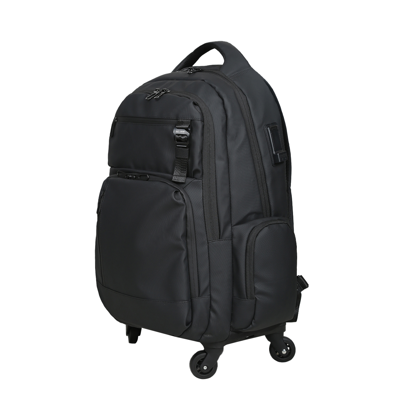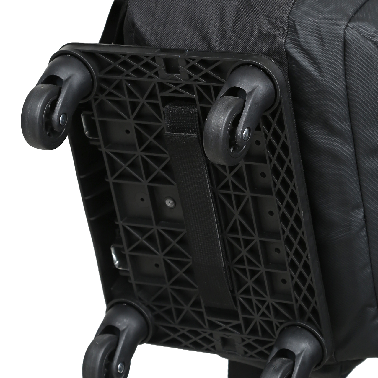 کوله پشتی چرخدار جداشو اسکای بو SBS15746 SKY-BOW دارای رنگ مشکی می باشد. این محصول ساخته شده از جنس رویه پارچه جودون ریز بافت با تراکم بافت بالا با روکش پی وی سی که مقاوم در برابر آب می باشد و آستر داخلی از جنس پلی استر می باشد. زیپ این محصول نمره ده می باشد. چرخ این محصول به صورت چهار چرخ گردان 360 درجه می باشد که چرخ ها با بند برزنتی که به زیر کوله و پشت کوله دوخت شده است، به راحتی به دسته ترولی نصب می شود و بسیار مقاوم و محکم می باشد. دسته ترولی این محصول از جنس آلیاژ آلومینیوم هست که مدل دسته چمدان می باشد و قابل تنظیم در ارتفاع های مختلف می باشد که با طراحی بسیار زیبای آن، این نوع دسته از دسته های تک متمایز شده است و در صورت عدم استفاده دسته ترولی می توانید به راحتی دسته ترولی را جدا کنید و از کوله پشتی خالی استفاده کنید. دسته ثابت بالای آن بسیار راحت می باشد.