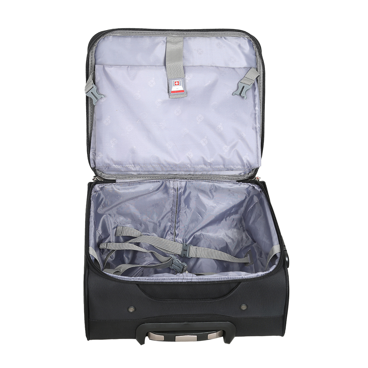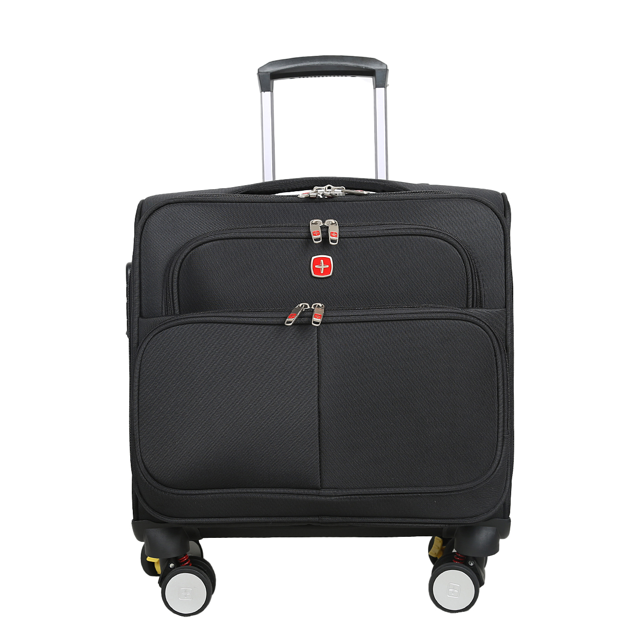 کیف خلبانی سوییس گیر SWISS GEAR مدل SBS5018 دارای رنگ مشکی می باشد. جنس این محصول از پارچه جودون ریز بافت با تراکم بافت بالا، بسیار مقاوم و محکم می باشد. دسته ترولی این محصول چهار استپ با طراحی بسیار مناسب از جنس آلیاژ مرغوب آلومینیوم ساخته شده است که بسیار مقاوم می باشد. چرخ های این محصول از جنس مواد پلاستیک و PU بوده که فوق العاده روان هستند و به صورت چهار چرخ دبل گردان 360 و فنردار و ترمز چرخ های عقب می باشد.