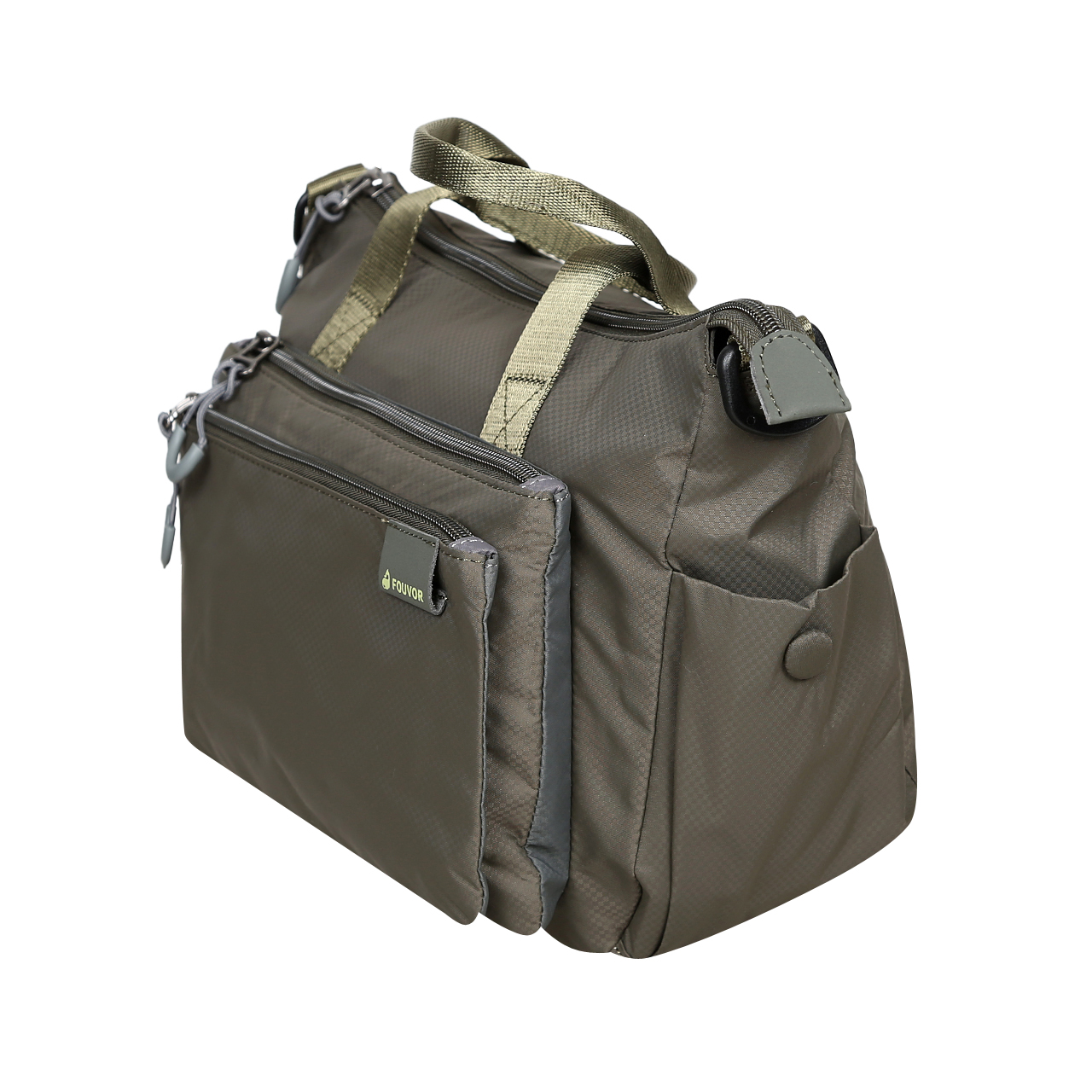 کیف رودوشی زنانه فوور FOUVOR مدل SBF2802-01، ترکیبی از شیکپوشی و عملکرد بینظیر! با طراحی مدرن و جنس باکیفیت، این کیف نهتنها استایل شما را به اوج میرساند، بلکه فضای کافی برای لوازم ضروریتان فراهم میکند. ایدهآل برای بانوانی که به دنبال راحتی و زیبایی همزمان هستند. از طراحی بسیار زیبای این کیف دستی که بگذریم، دارای طراحی چند محفظه ای می باشد که دسترسی کامل به محفظه اصلی با باز شدن زیپ وسط که دارای یک فضای زیپ دار و فضاهای پارچه ای جهت سازماندهی لوازم خرده ریز شما می باشد. در قسمت چپ و راست این محصول دو جیب وجود دارد. دو جیب زیپ دار در قسمت جلو و یک جیب زیپ دار در پشت محصول، همه لوازم جانبی شما با دسترسی آسان، هدفون یا هر وسیله جانبی دیگری را در خود جای می دهد. جنس این محصول از پارچه پلی استر با کیفیت بالا و مقاوم با روکش نایلونی با چگالی بالا ساخته شده است که این محصول را بسیار مقاوم کرده است. تسمه های دسته از نوار با کیفیت استفاده شده است. آستر داخلی این محصول برند تولید کننده بر روی آن قید شده است. این محصول را هم به صورت دستی و هم با بند دوشی می توان استفاده کرد. زیپ و سرزیپ های زیبا و با کیفیت این کیف دستی از دیگر ویژگی های چشمگیر این محصول می باشد.وزن این محصول 310 گرم می باشد.